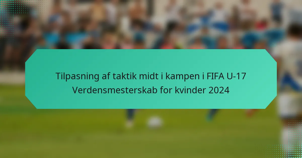 I FIFA U-17 Verdensmesterskabet for kvinder 2024 viser hold deres evne til at tilpasse taktikker midt i kampen ved at anvende strategiske justeringer til formationer og spillerudskiftninger. Trænere bruger realtidsdataanalyse og effektiv kommunikation til at reagere på de skiftende dynamikker i spillet, hvilket gør dem i stand til at udnytte modstandernes svagheder og forbedre deres egne defensive strategier. Denne tilpasningsevne har vist sig at være afgørende for at forbedre præstationen og opnå favorable resultater i kampe med høj indsats.